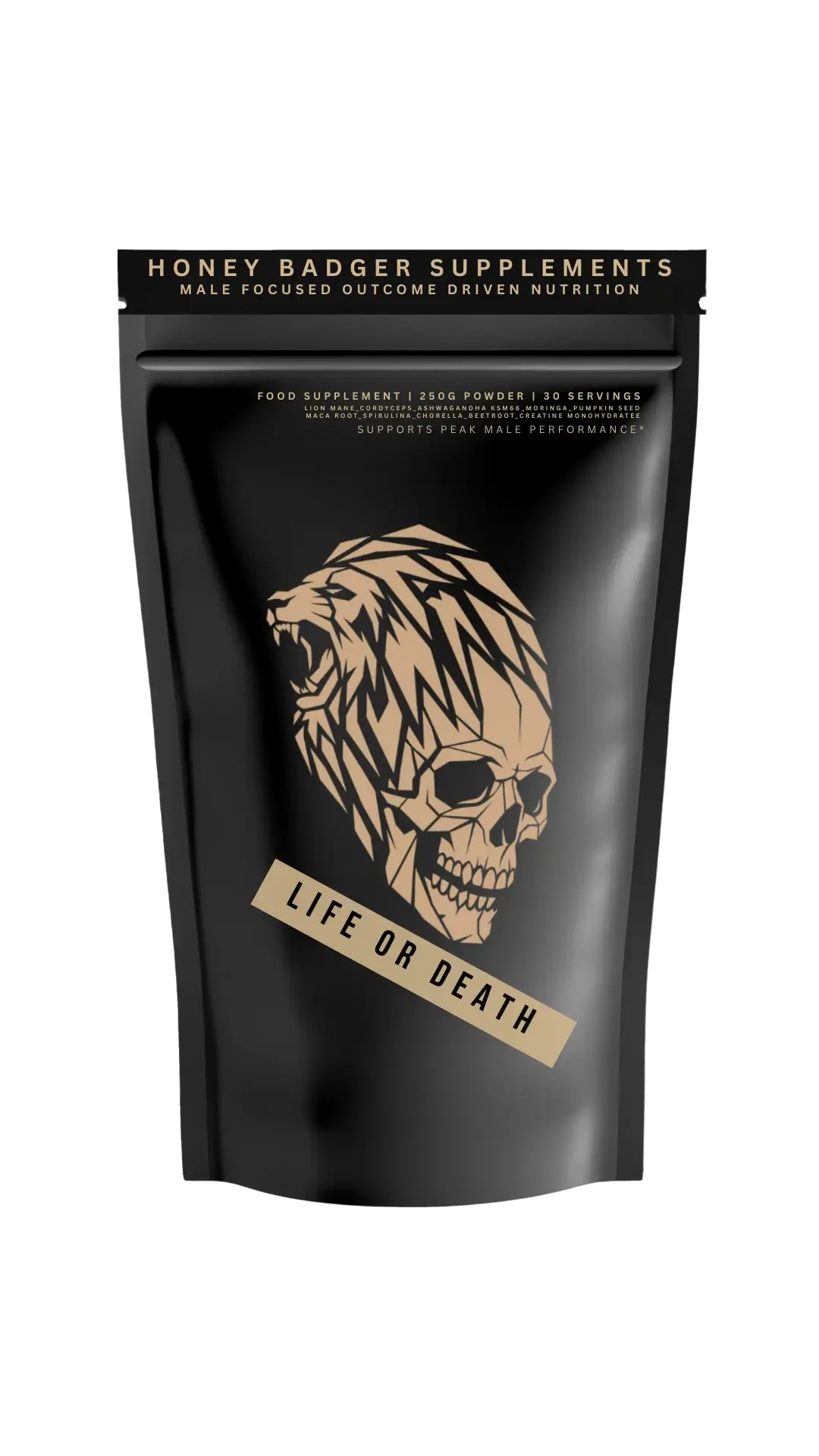Honey Badger Supplements products are sold as food supplements.They are not medicines and are not intended to diagnose, treat, cure, or prevent any disease.Any information provided is for general informational purposes only and should not replace professional advice.